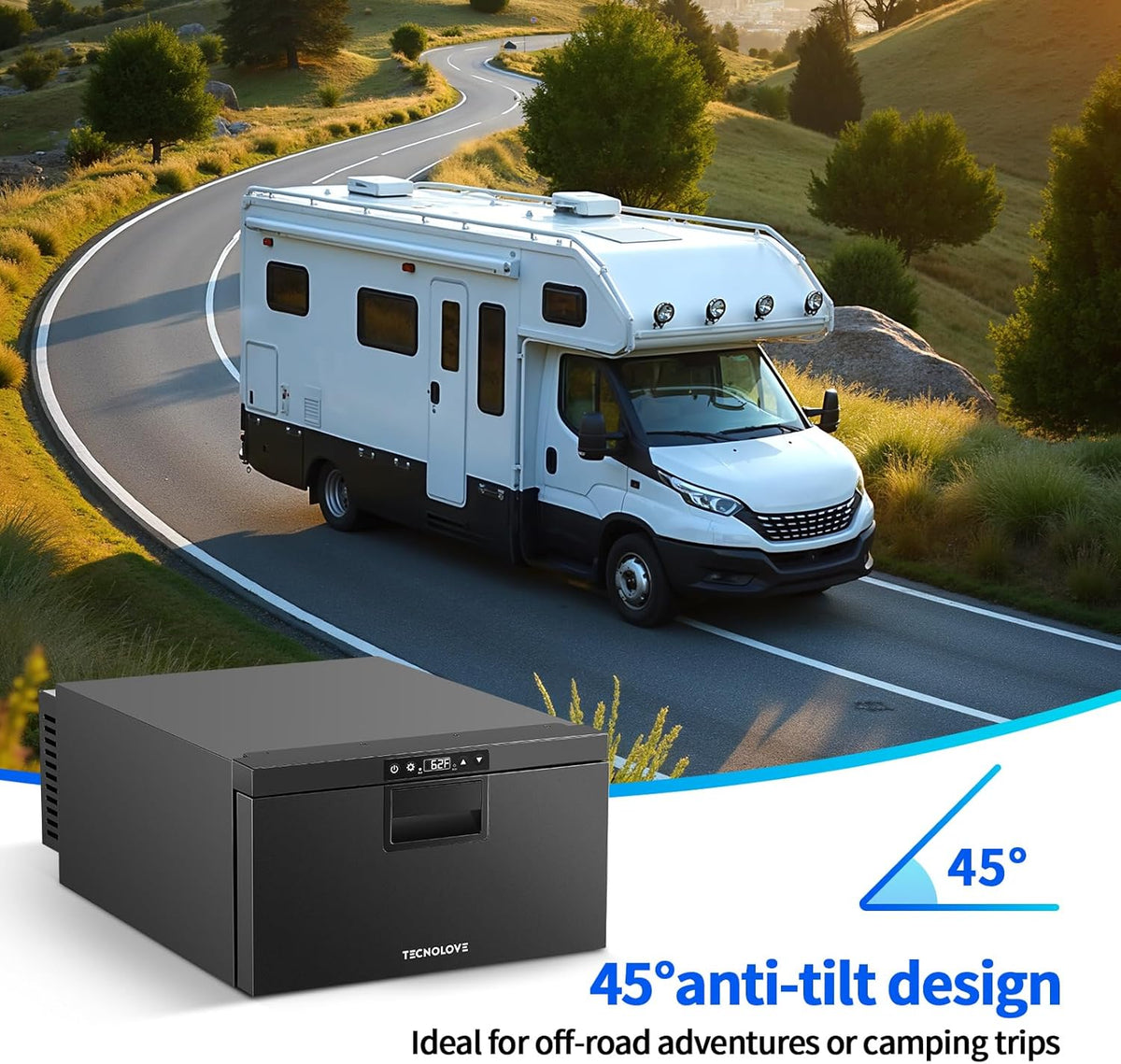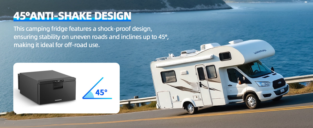 🍻 Spacious 33QT Capacity – Perfect For Road Trips & Camping Designed for RV living and outdoor adventures, this fridge offers ample storage: ✔ Holds 30 cans of soda, 20 beers, or 10 bottles – ideal for group trips. ✔ Fits meals, snacks, and ice cream – great for long-term travel. ✔ Space-saving design – maximizes storage in tight RV kitchens or truck cabins.