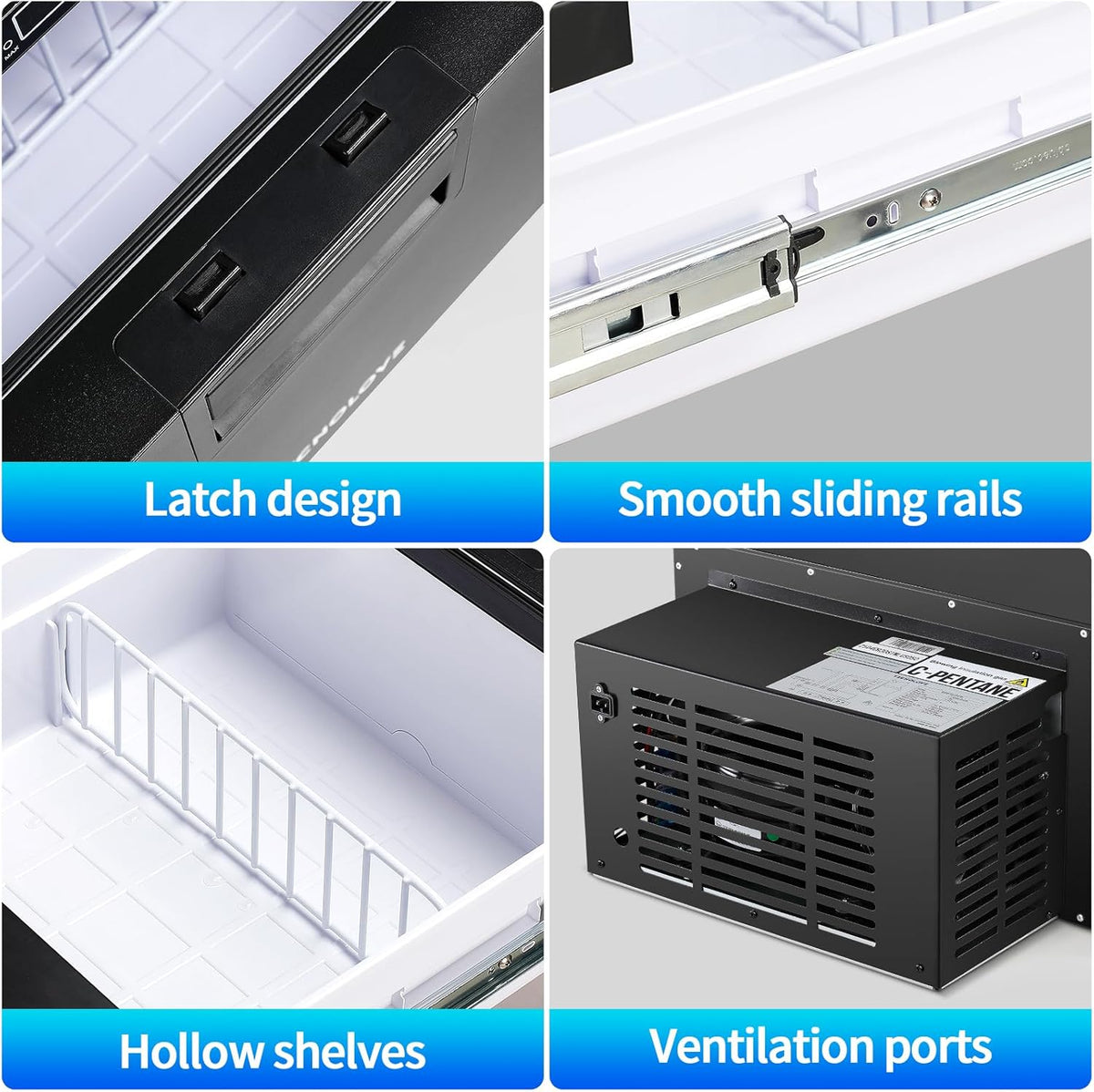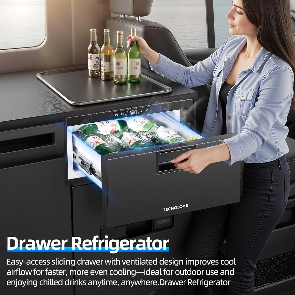 🔄 Convenient Slide-Out Drawers – Easy Access, No Hassle Unlike traditional coolers, our smooth-gliding drawers let you: ✔ Quickly grab items without lifting heavy lids. ✔ Organize food efficiently – no more digging through layers. ✔ Built-in LED light – easily find what you need in the dark.