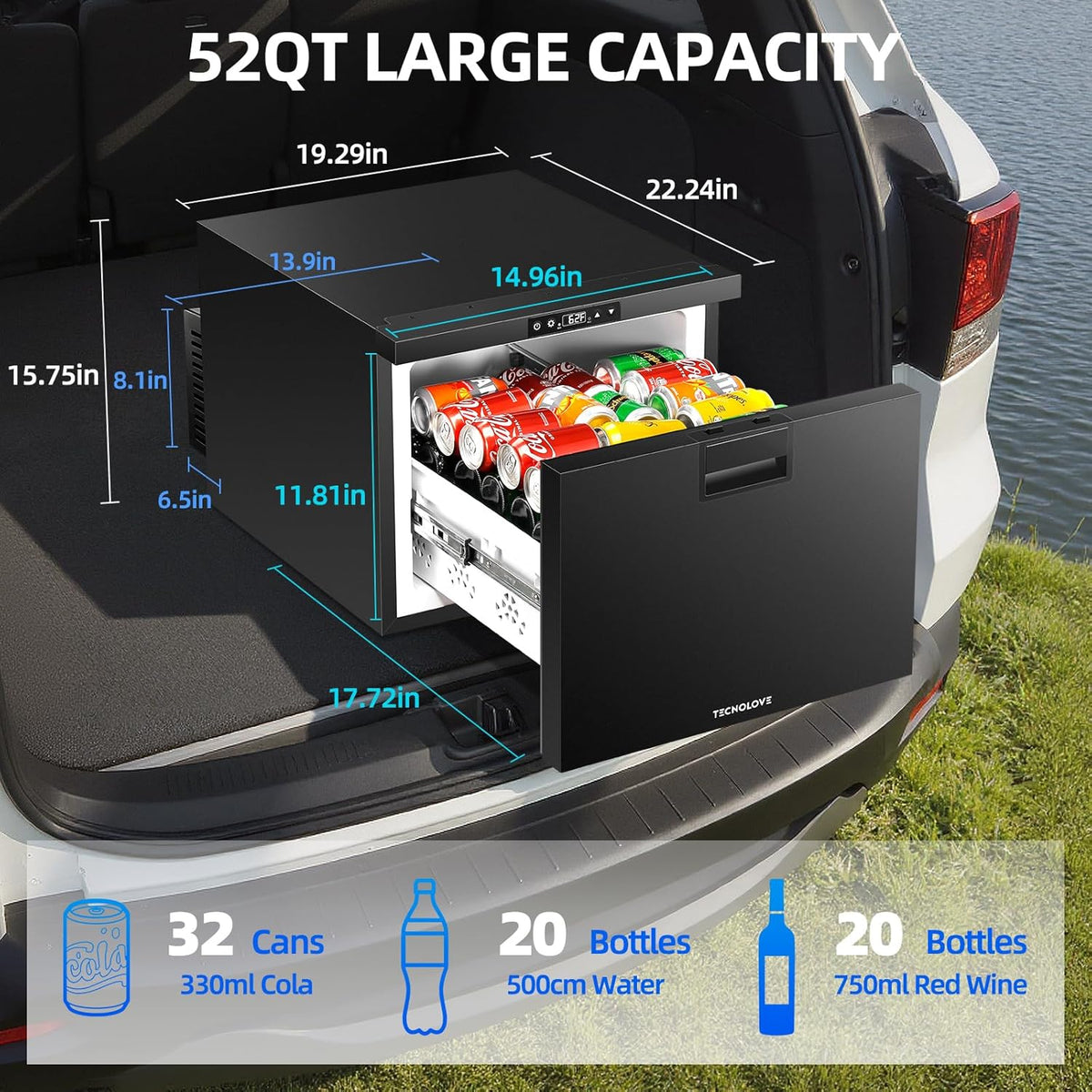 12 Volt Drawer Refrigerator 52QT(50L)12V RV Fridge Freezer,(-4℉-68℉)Portable Refrigerator,Car Cooler for Travel Car Fridge Freezer, Travel Camping Road Trips Tailgating, Truck Van SUV 12/24V DC