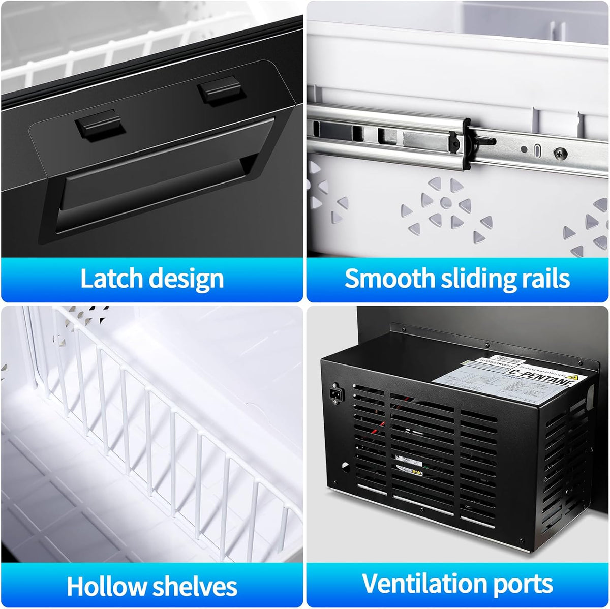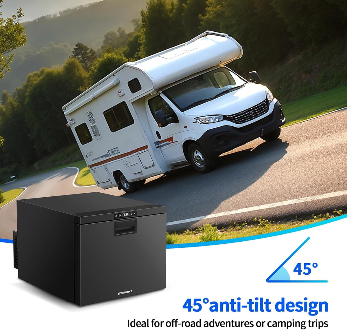 🍻 Spacious 52QT Capacity – Perfect For Road Trips & Camping Designed for RV living and outdoor adventures, this fridge offers ample storage: ✔ Holds 32 cans of soda, 20 beers, or 20 bottles – ideal for group trips. ✔ Fits meals, snacks, and ice cream – great for long-term travel. ✔ Space-saving design – maximizes storage in tight RV kitchens or truck cabins.